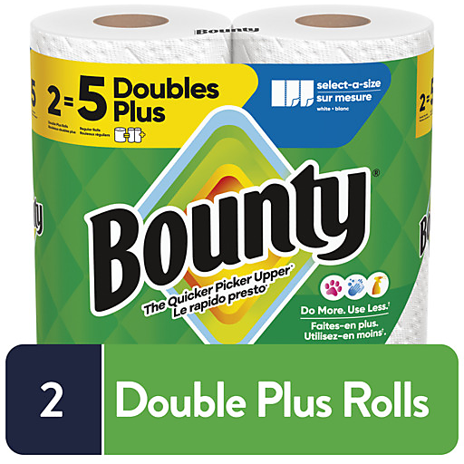 Bounty Paper Towels are 2x more absorbent, so you can clean up messes quicker and use less than the leading ordinary brand. Each paper towel sheet has a Durable Diamond Texture to tackle anything from everyday spills to tough projects throughout your home. A variety of pack and rolls sizes are available, and going bigger means you change the roll less often vs Bounty Regular Roll to always have Bounty on hand. Buy in bulk! Choose from different sheet sizes based on what works best for your needs, including Select-A-Size and Full-Size. You can also change it up with our printed designs.