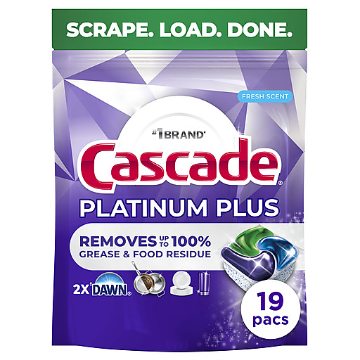 Meet Our Best Clean. Cascade Platinum Plus dishwasher ActionPacs give your dishes a breakthrough clean with up to 100% of grease and food residue removal. Loaded with 2X* the Dawn grease fighting power, and 2X* the tough food scrubbing power, it has soaking, scrubbing, and rinsing built right in. You can skip the pre-rinse, skip the soak, skip the scrub, and dare to dish differently. Just scrape your dishes and load them into your dishwasher with Platinum Plus to get a superior sparkling clean, saving you time, effort, and energy vs handwashing. Cascade Platinum Plus removes visible and invisible residue for gleaming glassware, dazzling dishes, and pristine pots and pans. We are the only dishwashing pods that are ROTO-ROOTER Recommended Safe for Pipes, guaranteed not to clog your pipes and give you the best clean regardless of how old your machine is. There is a reason we've been trusted to clean dishes for over 70 years!