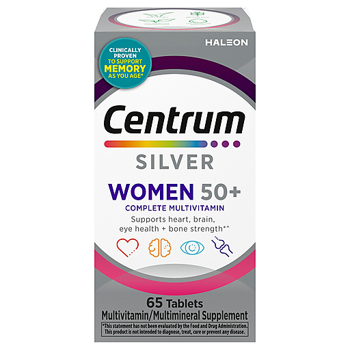 Centrum Silver Women's Multivitamin for Women 50 Plus brings you a tailored multivitamin/multimineral supplement that contains micronutrients to help support full body wellness (1). This women's vitamin with iron contains essential nutrients, including vitamin D and calcium to support strong bones and B Vitamins to help promote heart health (1, 2). This multivitamin for women over 50 also contains zinc and B Vitamins to help support normal brain function and Vitamins A, C, and E for eye health (1, 2). Key micronutrients in these multivitamins with zinc supplements help fill in nutritional gaps to promote overall wellness and vitality (1). These women's vitamins are verified Non-GMO (3) and gluten free. This women's multivitamin with iron features a smooth coating that makes it easy to swallow. Simply take one multivitamin daily to provide your body with essential vitamins and minerals. Help support full body wellness (1) with Centrum multivitamins for seniors, the #1 doctor and pharmacist recommended brand.