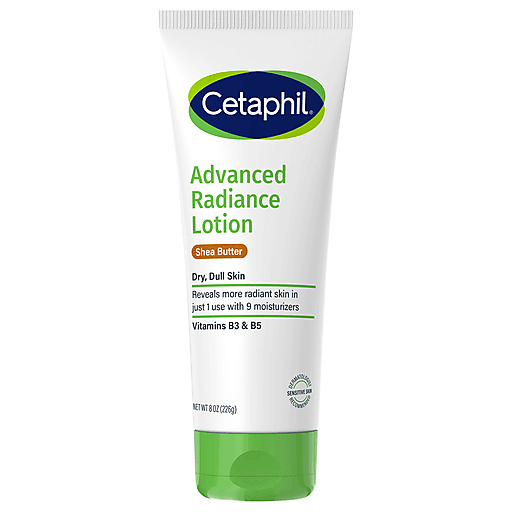 CETAPHIL Advanced Radiance Lotion reveals more radiant skin in one use. Formulated with nine moisturizing ingredients, including shea butter, to replenish and restore dry, dull skin. Enriched with a blend of key ingredients: hydrating glycerin, panthenol (vitamin B5) to hydrate, soothe and preserve the skin barrier, and niacinamide (vitamin B3) to help smooth skin texture and retain skin moisture barrier. This rich lotion immediately improves skin texture and luminosity, and provides long-lasting, 48-hour relief from dryness. Use daily to nourish dry skin and help restore skin natural barrier in just one week. Use with Advanced Radiance Cream for continuous skin hydration and restoration of drier areas like hands, feet, knees and elbows. This unique formula is hypoallergenic, non-comedogenic (so it will not clog pores), fragrance and paraben free, and clinically proven to be gentle on all skin tones and types. Effectively defends against 5 signs of skin sensitivity.