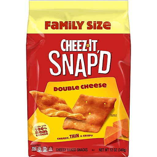 Big cheese taste inside and out, Cheez-It Snap’d Double Cheese cheese cracker chips are super thin and loaded with big double cheese flavor. Made with 100% real cheese inside and out, Cheez-It Snap'd snacks are a crowd-favorite. Snap'd snacks are delightfully thin with a crispy snap for extra crunch in every bite. Perfect for celebrating at games, adding to party spreads, pairing with sandwiches, and curing late-night savory cravings; Pack your Snap'd snacks in school lunches or as an extra snack on-the-go. With double cheese flavor, these snappy crackers are a cheese-lovers dream. Whether you're packing a school lunch, grabbing some for the office or taking along on a road trip, you'll find a delicious, crisp cracker snack that is filled with big double cheese flavor. Bring them to a party and watch them be devoured one by one. You'll love the bold crunch and delicious, tasty flavor of real cheese in every perfectly baked bite of Cheez-It Snap'd Double Cheese cheese cracker chips.