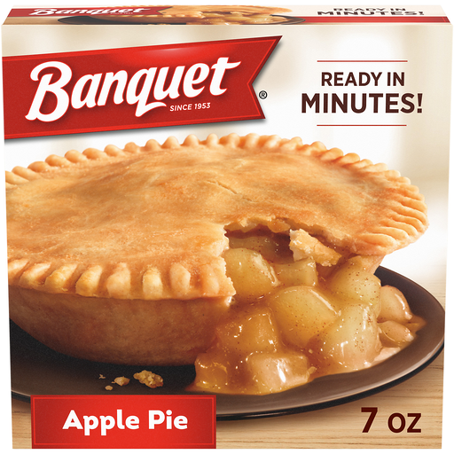 Banquet Apple Pie helps you save time on dessert without skimping on taste. Made with Washington apples, this frozen pie is also made with a tender, flaky crust. Prepare this fruit pie to enjoy a delicious frozen dessert any day of the week. The single serve fruit pies are perfect as an after-dinner dessert, while celebrating an occasion or whenever you’re in the mood for something sweet. Heat the frozen pies in a microwave for a quick and comforting dessert, or prepare in an oven for fresh-baked flavor. Store the 7 oz apple pie in the freezer until ready to prepare and do not thaw. in the U.S.A. for over 60 years, Banquet has been making delicious food the whole family loves.