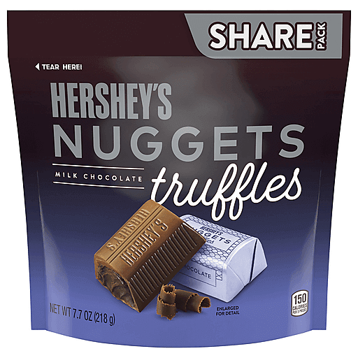 Smooth, creamy and oh so heavenly, HERSHEY'S NUGGETS milk chocolate truffles candy is a delightful treat you can share with loved ones or snack on throughout the day at home, at work and on the go. This luscious milk chocolate candy offers the bite size deliciousness you already love from HERSHEY'S NUGGETS candy with the added delight of a soft, creamy truffle center. Individually wrapped in stunning foils and placed in a share pack, these chocolate treats are ready to go with you wherever your day takes you. Hoping to revamp your snack selection for your next movie night? Pair some decadent chocolate truffle candy with your typical popcorn for friends to grab and go as they see fit — there's a chance these treats may even upstage the film! These truffle candies will fit into your plans throughout the year, whether you're stuffing holiday stockings, filling Easter baskets, packing Valentine's Day party favors, topping off Halloween trick-or-treat buckets or simply packing a lunch box on an ordinary day. Try placing HERSHEY'S NUGGETS milk chocolate truffles on your next batch of brownies, cookies or cupcakes. No matter who enjoys your baking, they're sure to notice the extra bite of bliss and beg for your secret recipe.
