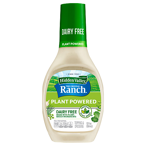 Powered by plants and fueled by flavor, Hidden Valley Plant Powered Ranch Dressing brings you the cool and creamy ranch taste you love—without the dairy. Made with soybean protein and a blend of garlic, onion and spices, this dairy free ranch has a creamy texture and classic ranch flavor. The Certified Plant Based dressing is also a gluten free dressing, so feel free to enjoy America’s favorite ranch (1). Ready to use after a quick shake, this premixed dressing is convenient for dipping, dunking and drizzling! Besides being a delicious salad topping, this gluten free salad dressing also makes a great ranch dipping sauce to pair with a veggie platter, party wings, fries and more. Try it as a topping for veggie burgers and other quick meals, or mix it with pasta or potatoes for a delicious side dish. America’s No. 1-selling ranch dressing, Hidden Valley Ranch Dressing is Ranch Done Right (1).