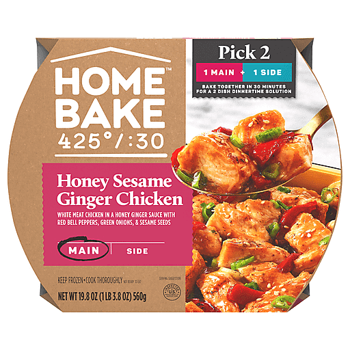 Dinnertime made simple. Just pick 2. Spend more time with the ones you love and less time cooking with HomeBake 425°/:30. We’ve got you covered with frozen mains and sides you can mix and match to create a dinnertime solution everyone will love. Our HomeBake 425°/:30 Honey Sesame Ginger Chicken features white meat chicken in a honey ginger sauce with red bell peppers, green onions and sesame seeds. Add a side, like our Teriyaki Vegetable Blend or Vegetable Fried Rice, and enjoy a family dinnertime solution that looks and tastes homemade any night of the week. With HomeBake 425°/:30, one main and one side bake together at 425 degrees Fahrenheit for 30 minutes. Using the same oven, same temperature and same cook time means less prep and cleanup, and more time spent with friends and family. HomeBake 425°/:30 is food that makes family happen.