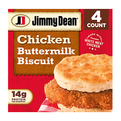 Nothing beats a warm, delicious chicken breakfast sandwich. Satisfy cravings from the comfort of home with a classic Jimmy Dean Buttermilk Chicken Biscuit Breakfast Sandwich. Each sandwich is made with a savory, breaded chicken breast filet made with premium white meat chicken and served on a golden buttermilk biscuit. Packed with 14 grams of protein per serving, this breakfast sandwich provides the fuel to help power the morning. To prepare, simply warm in the microwave or air fryer for a quick and easy breakfast at home or on the go. Every box contains 4 microwaveable breakfast sandwiches. Keep the individually wrapped frozen breakfast sandwiches in the freezer until ready to start the day. Brighter mornings begin with Jimmy Dean brand breakfast sandwiches.