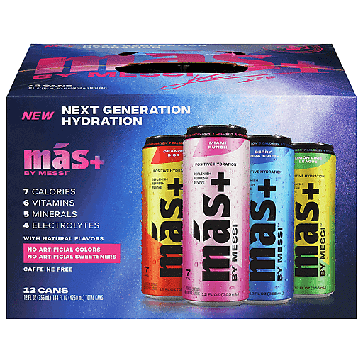 Mas+ By Messi Hydration Beverage, Assorted 12 Ea