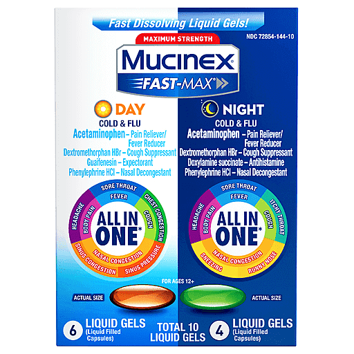 Mucinex Liquid Gels Day Night All In One Cold & Flu 10 Ea