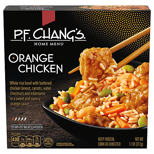 Enjoy delicious restaurant-style flavors in the convenience of your own home with P.F. Chang's Home Menu Orange Chicken. Savor the taste of a restaurant-inspired white rice bowl with tempura-battered chicken breast, carrots, water chestnuts and edamame in a sweet and savory orange sauce. You don't have to leave your house to enjoy an easy meal with little effort. This mouthwatering chicken dish is quick and easy to warm in the microwave and contains no preservatives and no artificial flavors or colors. Serve your frozen meal with other Asian dishes and bring the taste of your favorite Asian-inspired restaurant to your kitchen table with P.F. Chang's Home Menu frozen foods. Stay in. Eat like you didn't.