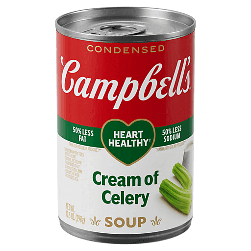 Add rich, creamy flavor to your favorite dishes with Campbell's® Condensed Heart Healthy* Cream of Celery Soup. This vegetarian soup is crafted with celery, onion and farm-fresh cream to provide a deliciously smooth foundation to any recipe. The result is a heart healthy soup* with 50% less fat and 50% less sodium than our regular product.** Use it as the hero ingredient in recipes like Healthy Lemon Chicken Scallopini With Spinach, or substitute it for roux or bechamel as a sauce starter. Campbell’s® convenient canned soup is a year-round pantry staple and a must-have for creating something quick and easy. It's also delicious on its own or enjoyed with a sandwich or salad. Simply mix the condensed soup with 1 can of water or nonfat milk and microwave on high for 3 to 3.5 minutes, or heat in a pot on the stove, stirring occasionally. Each 10.5 oz recyclable can contains about 2.5 servings of microwave soup. (*While many factors affect heart disease, diets low in saturated fat and cholesterol may reduce the risk of this disease. **Contains 410mg sodium and 2g fat per serving vs. 850mg sodium and 7g fat in our regular Cream of Celery)