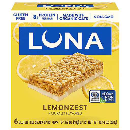 Bite into delight with LUNA Bar LemonZest Flavor Gluten Free Snack Bars. Made with organic rolled oats and offering 8 grams of plant based protein per bar, LUNA LemonZest granola bars are delicious protein snacks to help you fight off hunger during your busy day. The individually wrapped snacks are conveniently portable and great for tossing in tote bags, purses, and backpacks when heading out the door, making them wonderful office snacks and on the go snacks. Non-GMO and certified kosher, these gluten free protein bars contain no high-fructose corn syrup. Experience the tasty bliss of LUNA – a burst of flavor to take on the day.