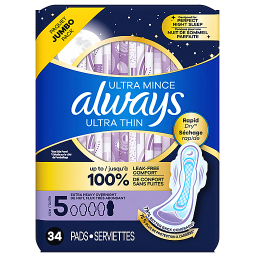 Always Ultra Thin Extra Heavy Overnight Size 5 Pads Jumbo Pack 34 Ea