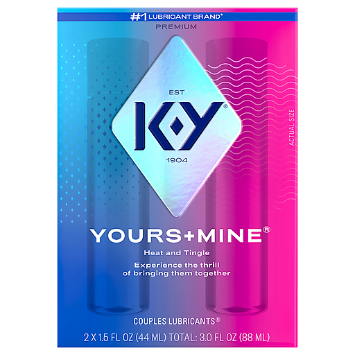 K-Y Yours + Mine couples lube is designed to help keep the excitement coming with two personal lubricants that combine to help ignite much more than conversation. A tingling, thrilling sensation for her. An invigorating, warming sensation for him. Put them together, and now we’re talking. Our YOURS (him) lube is glycerin based and MINE (Her) lube is water-based bringing two exciting sensations to delight each other as well as being compatible with toys. K-Y is the #1 Doctor recommended personal lubricant brand*. This product contains one 3 FL OZ bottle (1.5 FL OZ) (Him) and (1.5 FL OZ) (Her).