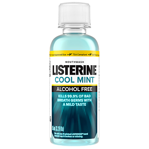 Say goodbye to bad breath with Listerine Alcohol-Free Cool Mint Alcohol-Free Mouthwash in a refreshing, less intense Cool Mint flavor. This daily oral rinse mouthwash with a mild taste kills 99.9% of bad breath germs for a fresher and cleaner mouth than brushing alone. It features flavors found in Listerine Antiseptic Oral Care Mouthwash, but in a less intense alcohol-free mouthwash formula. From the #1 dentist-recommended brand of over-the-counter mouthwashes, the great-tasting Cool Mint flavor of this less intense, fresh breath mouthwash leaves your mouth feeling clean and refreshed. Get 24-hour protection from bad breath germs by rinsing with this non-alcoholic minty mouthwash for 30 seconds twice a day, both morning and night as part of a regular oral and dental hygiene routine.