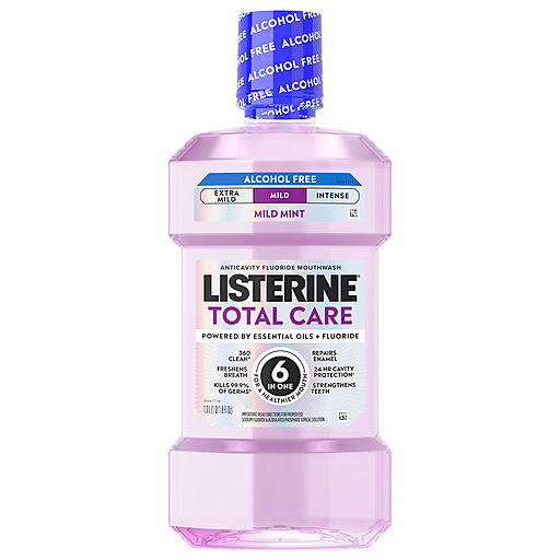 Give your mouth complete oral care with Listerine Total Care Alcohol-Free Fluoride Anticavity mouthwash. Listerine Total Care Alcohol-Free oral rinse provides the same six dental hygiene benefits in one as Listerine Total Care Fluoride Anticavity Mouthwash, but in a less intense, alcohol-free mouthwash formula. It freshens breath, kills 99.9% of germs that cause bad breath, with 5x more cleaning power * From the #1 dentist-recommended brand, this mouthwash for bad breath in Fresh Mint flavor gives your mouth a clean** you can taste. * vs brushing and flossing alone based on bad breath germs, **based on bad breath germs.
