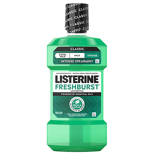 Protect your mouth from germs and get fresh breath with Listerine Freshburst Antiseptic Mouthwash for bad breath. It kills 99.9% of germs that cause bad breath, plaque, and gingivitis for a fresher and cleaner mouth than brushing alone. Clinically shown to reduce 52 percent more plaque and 21 percent more gingivitis than brushing and flossing alone, this antiseptic mouthwash provides a deep clean that cares for your whole mouth. Listerine Freshburst Mouthwash is a recipient of the ADA Seal of Acceptance for fighting, preventing, and reducing plaque and gingivitis. The great tasting Freshburst spearmint flavor of this antiseptic mouthwash leaves your mouth feeling clean and fresh. Achieve maximum results by rinsing with this refreshing oral rinse for 30 seconds twice a day, both morning and night, for 24-hour germ protection. *when used twice daily