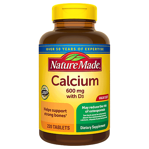 Nature Made Calcium, With D3, 600 Mg, Tablets, Value Size 220 Ea