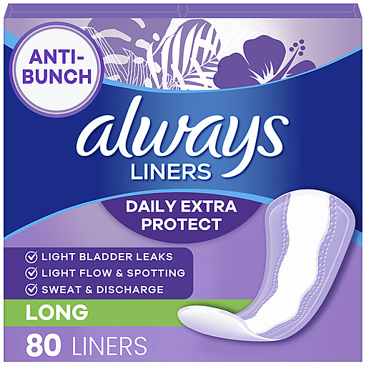 Always Always Daily Extra Protect Liners, Long Length Length, Unscented Panty Liners, 80 Ct 80 Ct