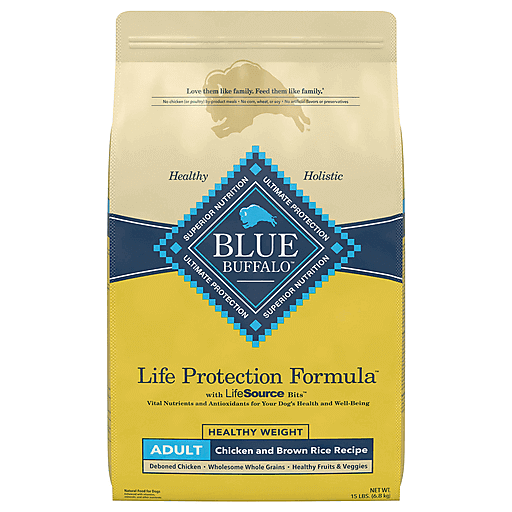 Blue Buffalo Natural Adult Healthy Weight Chicken & Brown Rice Recipe Food For Dogs 15 Lb