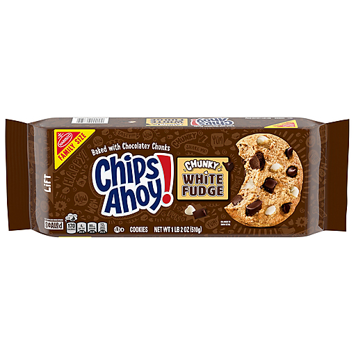 CHIPS AHOY! Chunky White Fudge Chocolate Chunk Cookies are the chunky CHIPS AHOY! cookies you know and love but with white fudge chocolate chips as an added sweet treat. Make lunches at school or work more exciting by including CHIPS AHOY! Chunky White Fudge Cookies. Serve as birthday cookies, add as ice cream toppers, or use to create ice cream sandwiches at your next holiday or birthday party. Regardless of the occasion, these crunchy cookies make a simply delicious treat or dessert. The resealable lift tab makes this package of CHIPS AHOY! cookies easy to open and close for convenient storage. Bulk cookies packs ensure you have CHIPS AHOY! chunky cookies on hand for any occasion.