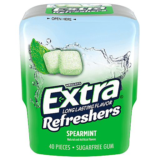 Experience a rush of minty flavor with EXTRA Refreshers Spearmint Chewing Gum. Each piece of EXTRA has a crunchy exterior coated in tiny crystals and a chewy center that's bursting with minty flavor. From a night out on the town to walking to your next meeting, EXTRA Refreshers is the invigorating boost you need to activate your EXTRA Zone.