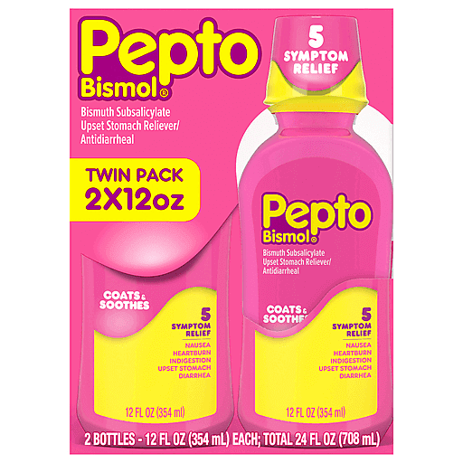 Pepto Bismol 5 Symptom Relief Upset Stomach Reliever/Antidiarrheal Twin Pack 2 Ea