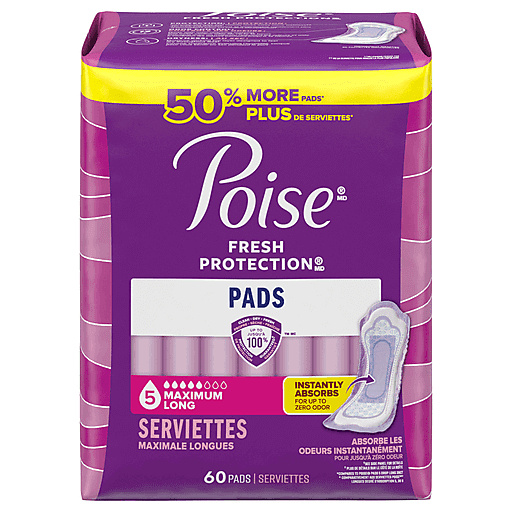 Poise Pads, 5 Maximum, Long 60 Ea