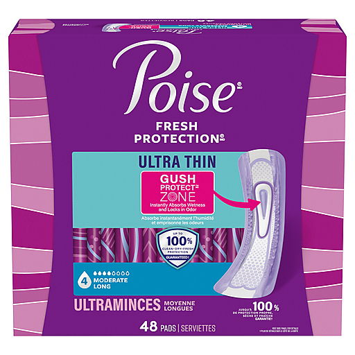 Poise Ultra Thin 4 Moderate Long Pads 48 Ea