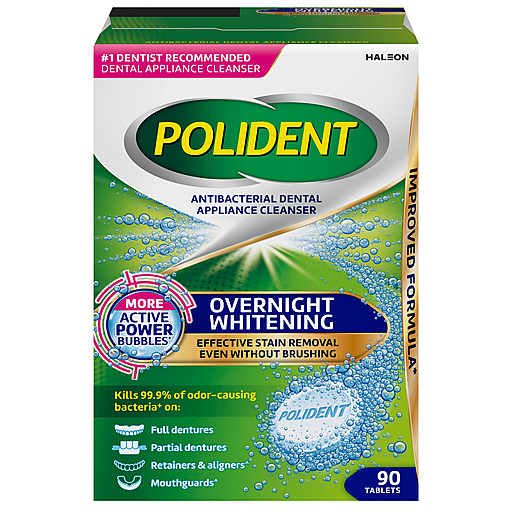 Polident Tablets Overnight Whitening Antibacterial Dental Appliance Cleanser 90 Ea