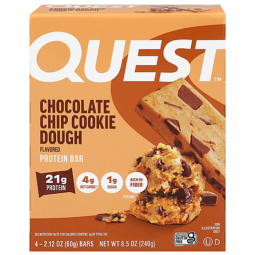 Quest Chocolate Chip Cookie Dough Flavored Protein Bar 4 Ea