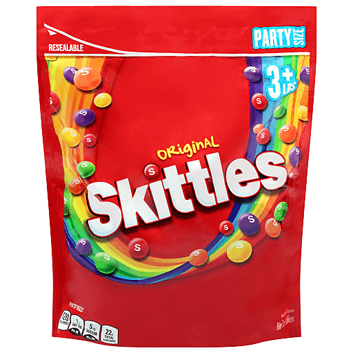Experience the vibrant world of SKITTLES Original Chewy Candy, a colorful assorted candy mix that's perfect for any occasion. This delicious candy bag is filled with a fruity blend of grape, lemon, orange, strawberry, and lime flavors, making it a mouth-watering treat for anyone who loves chewy SKITTLES. The SKITTLES Original Chewy Candy bag is ideal for sharing with friends and coworkers during game nights, as a midday snack, or as a sweet addition to your candy buffet. It's also a great road trip candy companion. Enjoy this chewy candy in a resealable candy bag that's perfect for snacks on the go. With SKITTLES, you can Taste the Rainbow and enjoy the bold, fruity flavors. Whether you're looking for a fun party candy or a colorful dessert topping, SKITTLES Original Chewy Candy is the perfect choice. Add to your cart today.