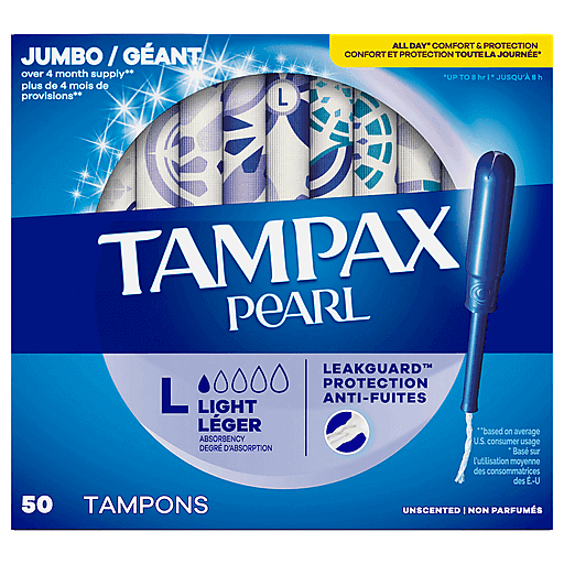 Tampax Light Unscented Jumbo Tampons 50 Ea