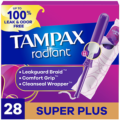 Tampax Tampax Radiant Tampons, #1 Tampon Brand, With Leak Guard Braid, Super Plus, 28 Count 28 Ct