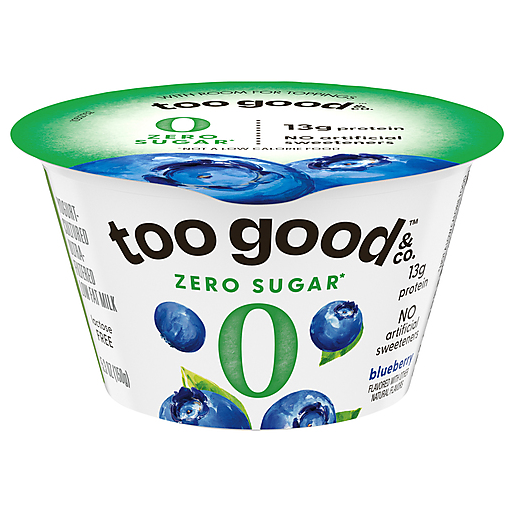 Doing good is about to become a whole lot more delicious with a Too Good & Co. Zero Sugar* Blueberry Yogurt-Cultured Ultra-Filtered Low Fat Milk Product. With 0g of total sugar and 13g of protein per 5.3 oz serving, Too Good & Co. cups are great-tasting options for adding complete protein to your diet. Invigorate your day with Too Good & Co. Zero Sugar Low Fat snack cups. *Not a low calorie food.