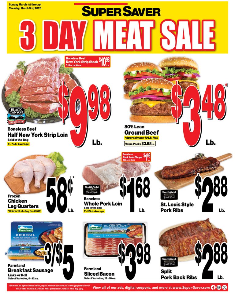 Prices effective from Sunday, March 1st, through Tuesday, March 3rd, 2026.